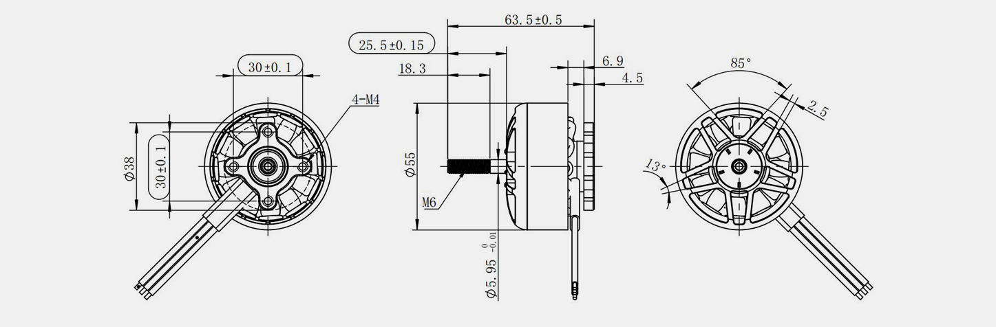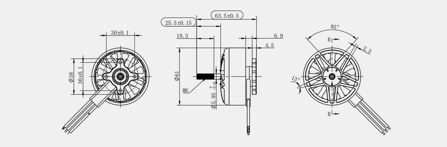 | حداکثر پ (W) | ولتاژ (V) | حداکثر من (الف) | KV | جریان بدون بار (الف) | مقاومت (mΩ) | لهستانی ها | نور موتور (میلی متر) | استاتور دیم. (میلی متر) | نصب (میلی متر) | ن.W. (g) | پشتیبانی (اینچ) | ||||||||||||||